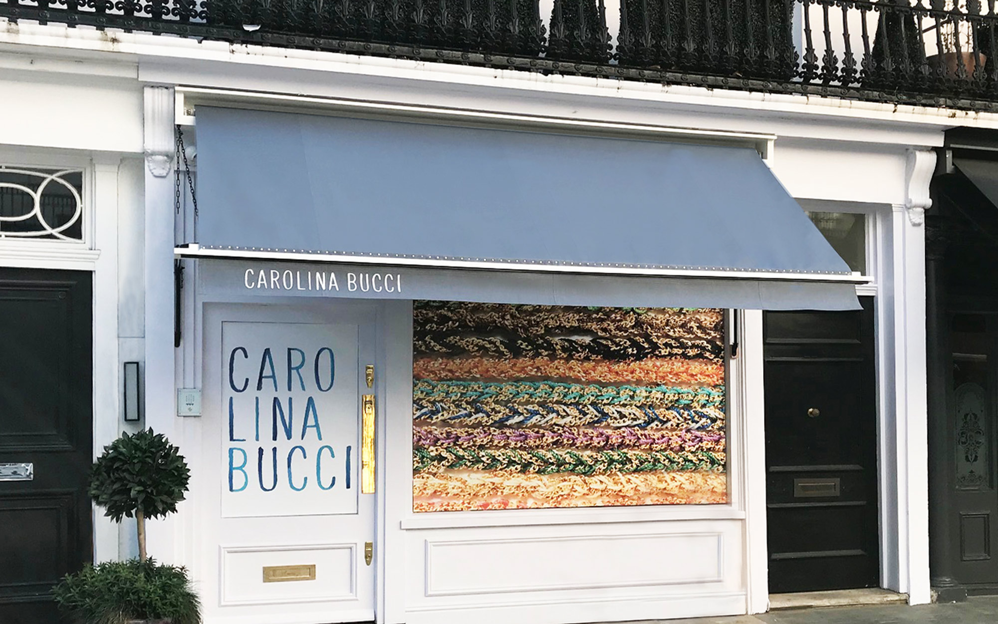 Today we had to install a Victorian Awning based in London. Bucci is a unique boutique that sells fine jewellery, which is created in the family’s workshop in the goldsmiths’ quarter of Florence, where Carolina Bucci sits side by side with craftsmen to work out new projects and how designs can be realised.