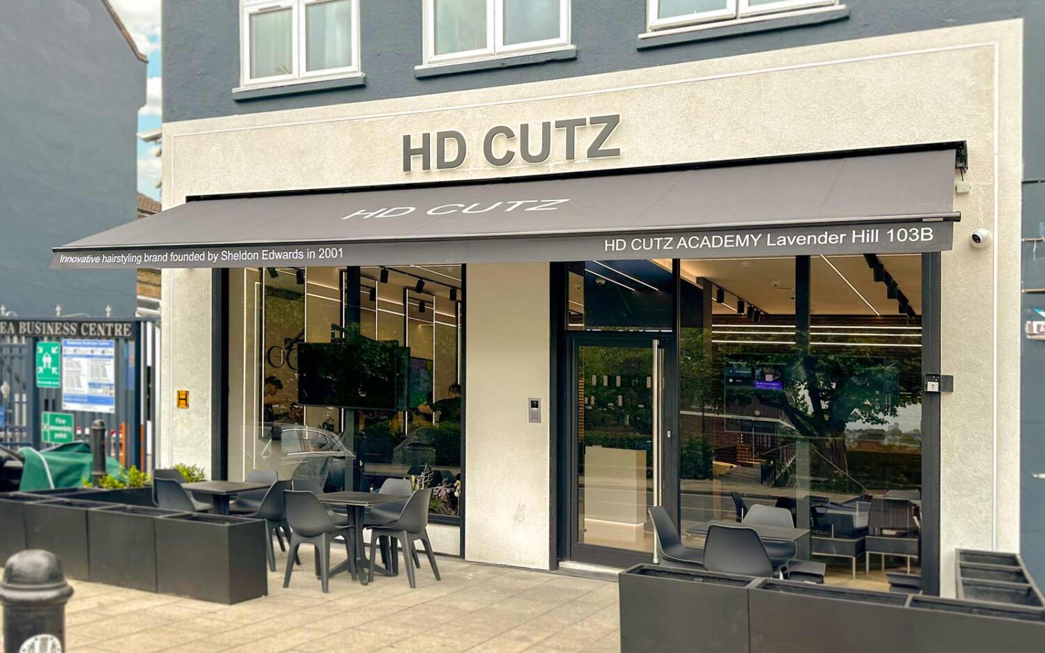 HD Cutz Barber Shop in Clapham has a particularly long shopfront fascia, so the commercial awning they requested would need to be especially robust. Our Classic retractable awning recommendation was accepted, and the images here show an exceptionally neat installation.
